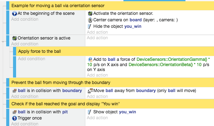 GDevelop has the ability to access the sensors that can be found on most mobile devices.